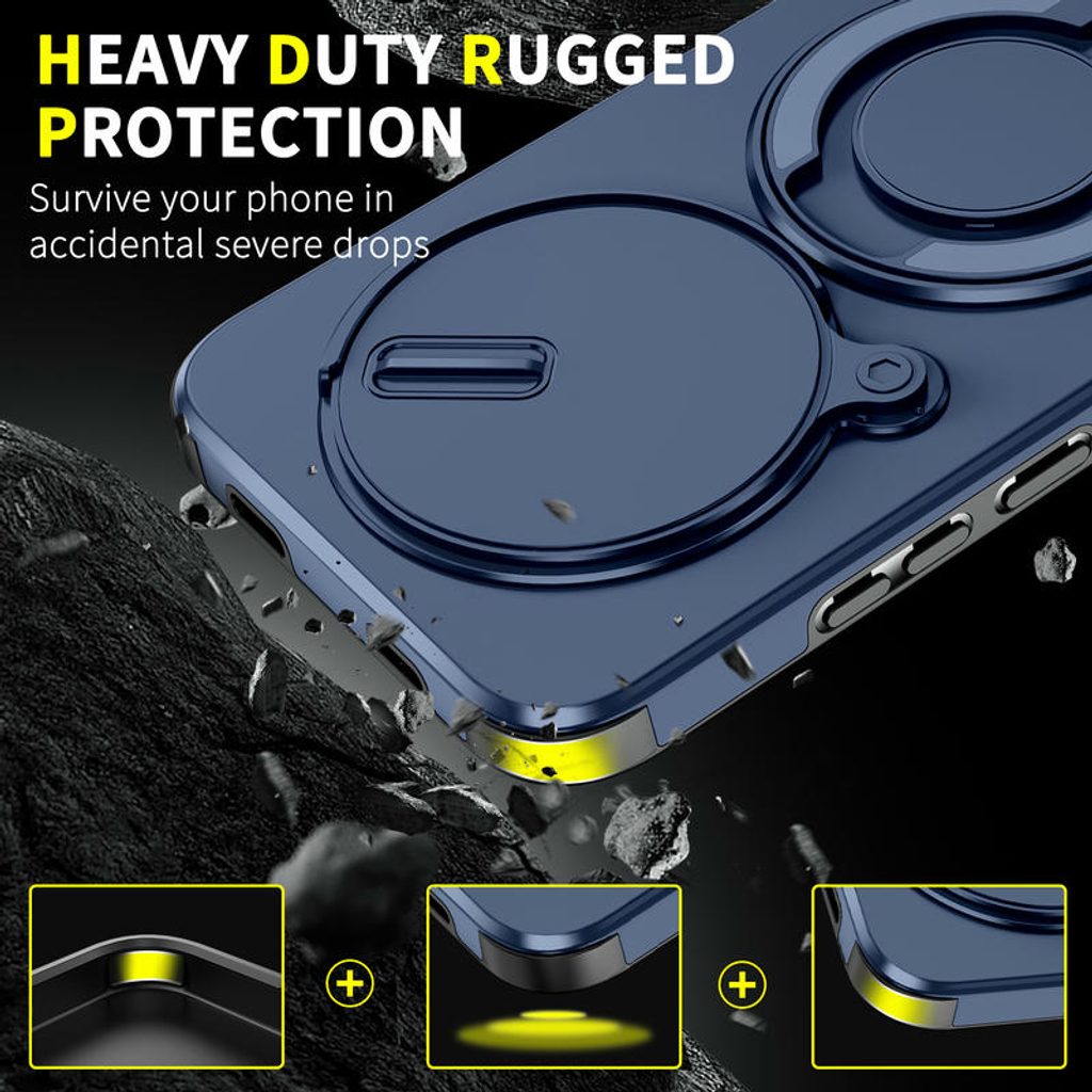 Zahvaljujući metalnom prstenu na stražnjoj strani maske možete udobno nasloniti telefon na bilo kojoj površini. Gledajte videozapise, razgovarajte ili radite bez potrebe da držite telefon u ruci. Stalak se okreće za 360 stupnjeva, što nudi maksimalnu fleksibilnost.