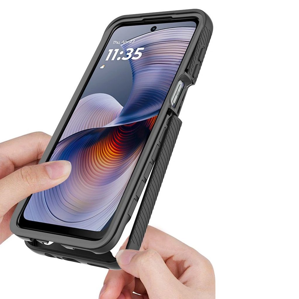 Prednji dio čini okvir koji obuhvaća rubove telefona s integriranim hibridnim staklom tvrdoće 5H, bočni i stražnji dio čine konstrukcijski skelet. Cjelina je izrađena od mješavine mekog termoplasta i ojačane polikarbonatne prevlake. Oba dijela se spajaju zahvaljujući konstrukciji "Snap-On".